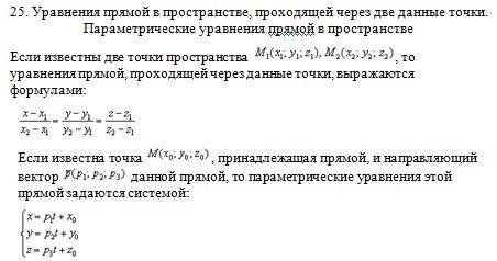 Уравнения прямой в пространстве, проходящей через две данные точки. Параметрические уравнения прямой в пространстве