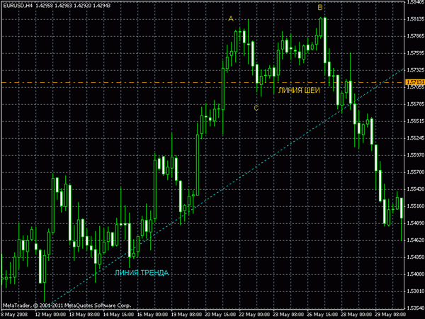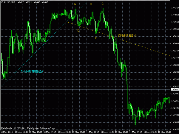 Модель «голова-плечи» является основной моделью разворота тренда.
