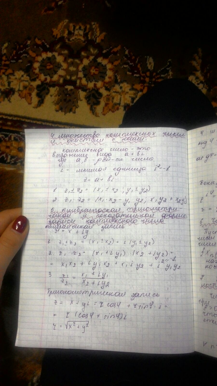 Множество комплексных чисел и действия с ними, алгебраическая, тригонометрическая и показательная формы записи комплексного числа.