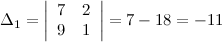 заменой его первого столбца столбцом свободных коэффициентов. Будем иметь:
