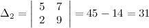 заменой второго столбца столбцом свободных коэффициентов: