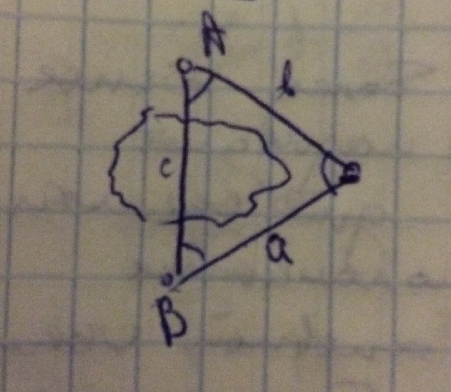 Если встретились недоступные расстояния для измерения лентой, то их вычичляют косвенным способом по теореме синусов: