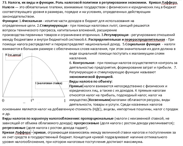 73. Налоги, их виды и функции. Роль налоговой политики в регулировании экономики. Кривая Лаффера.