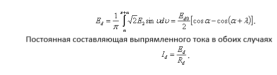 При одинаковых значениях угла ? среднее значение выпрямленного напряжения в режиме с прерывистым током будет больше, чем в режиме с непрерывным током, благодаря уменьшению отрицательного участка в кривой выпрямленного напряжения, но меньше, чем при работе выпрямителя на активную нагрузку.